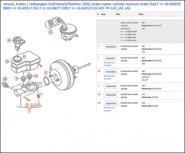 This version does NOT have a brakelight pressure switch attached. For that later type please search 1K2614019D