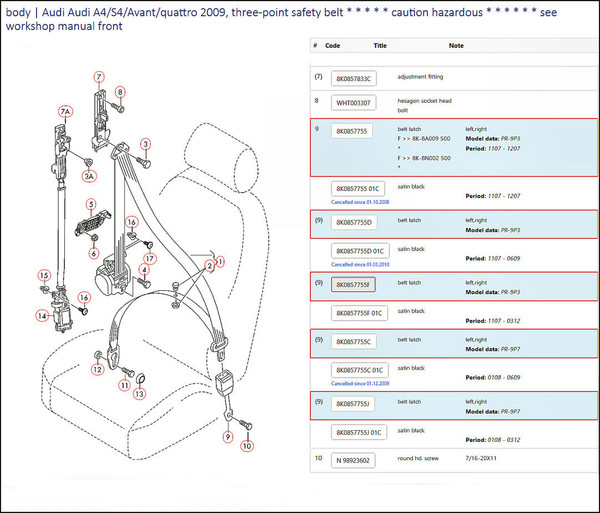 AUDI FRONT SEATBELT LATCH SWITCH BUCKLE A4 A5 A6 A7 A8 R8 2008 - 2016 OE GENUINE USED LEFT RIGHT LH RH