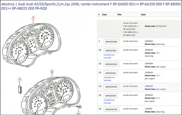 OEM genuine original part made in Europe by VDO. Carefully removed from a 2005 Jap-import Audi A3 8P 3.2L V6 petrol