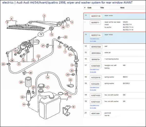 AUDI A3 A4 A6 VW VOLKSWAGEN PASSAT REAR WINDSCREEN WIPER MECHANISM MOTOR 8L0955711B 1997 - 2005 OEM GENUINE USED TESTED