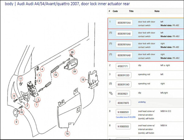 part number 8E0839015AA or 8E0 839 015 AA
