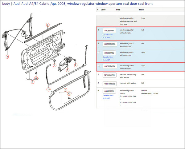 Genuine Audi part numbers: