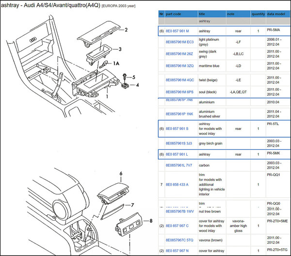 AUDI A4 B6 B7 GENUINE USED REAR ASHTRAY 8E0857961M WALNUT GENUINE OE OEM USED LIKE NEW 2001 - 2008