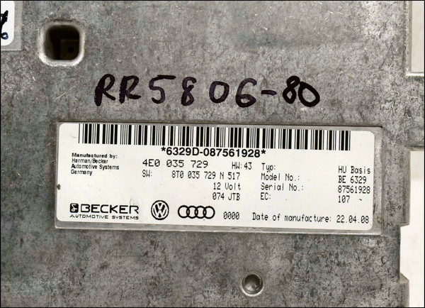 Software: 8T0035729T or 8T0 035 729 T (has been updated to release level 5570 or "T", from earlier "N" or "P" software revisions as shown in additional photos)
