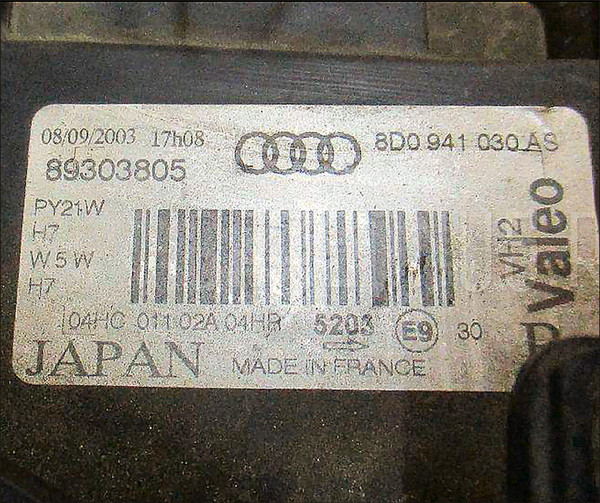 This is an original driver side factory OEM Halogen headlamp made by Valeo carefully removed from a 2001 Jap-import A4 B5.5 Avant
