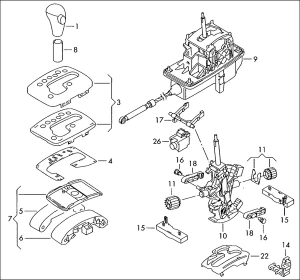 Selector Mechanism including cable: 8E2713105 or 8E2 713 105
