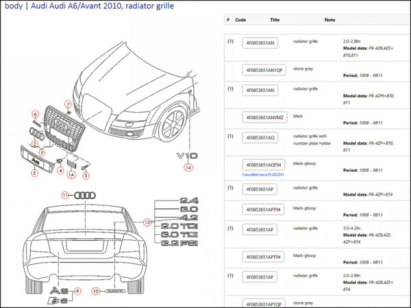 Also fits pre-facelift bumpers from 2005 to 2008 as all A6 C6 bumpers accept grilles of the same dimensions