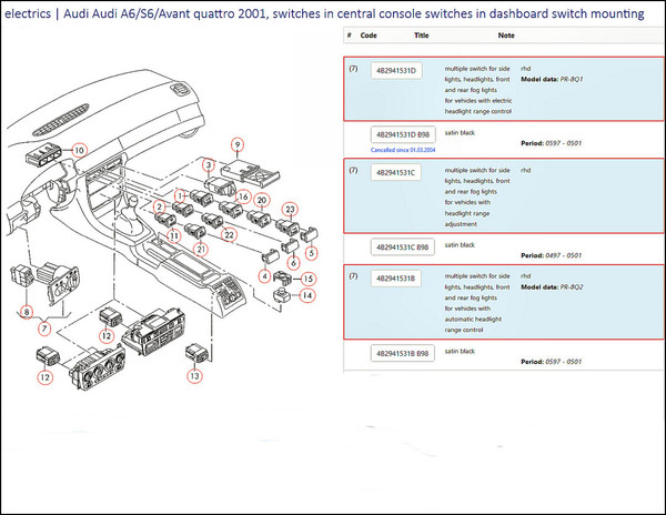 AUDI A6 S6 ALL-ROAD C5 1998 - 2005 GENUINE OEM HEADLIGHT SWITCH USED IN AVERAGE CONDITION