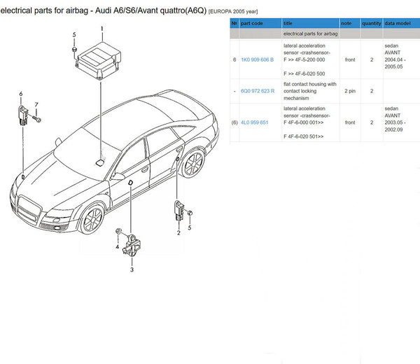 AUDI A6 S6 RS6 AIRBAG SRS LATERAL ACCELERATION SENSOR FRONT LEFT RIGHT G283 1K0909606B 2004 - 2006 USED OEM GENUINE TESTED