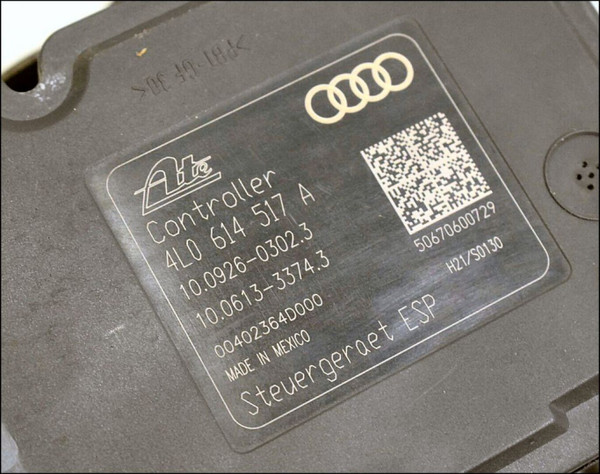Carefully removed from a 2007 Audi Q7 with ESP Stability option. This part underwent a diagnostic scan prior to removal and had no stored fault codes other than those consistent with damaged wheel sensors and low battery voltage due to collision
