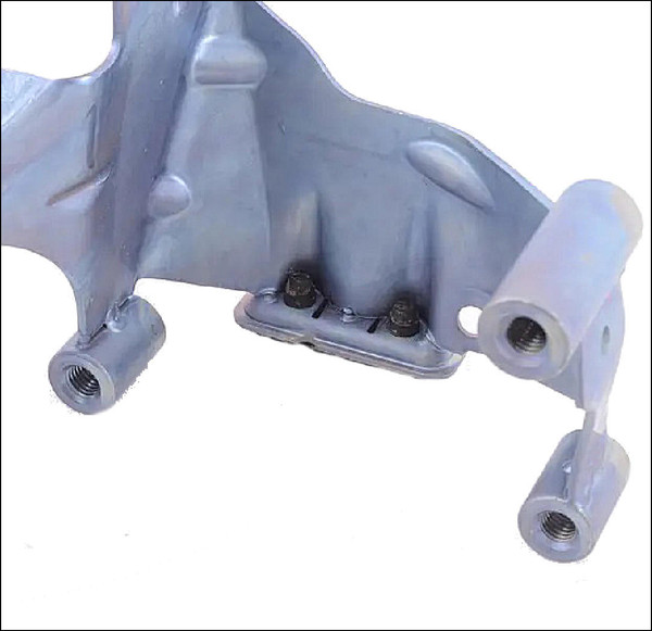 This is the engine mount retaining plate for the left side of your engine. It attaches to the left side of the support bracket, and is the connection point between the mount itself, and the support. If your piece is bent or broken, you may experience excessive drivetrain vibrations
