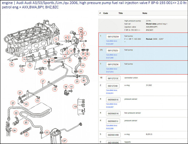 A3/S3:2004-2007 2.0T(petrol)Engine code:BPY/BWA/AXX/BHZ/BZC