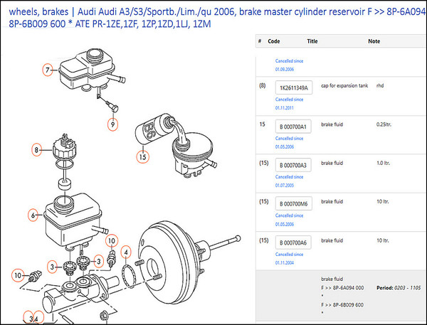 AUDI VW BRAKE FLUID RESERVOIR CAP WITH SENSOR FITS MANY MODELS 2004 - 2011 USED
