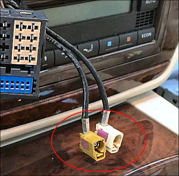 Some VW radios, usually the more basic models with Diversity aerial systems, have 2 separate male FAKRA plugs on the rear panel; one white and one beige. Other more high-end models such as the excellent RCD510 touchscreen have a double male connector