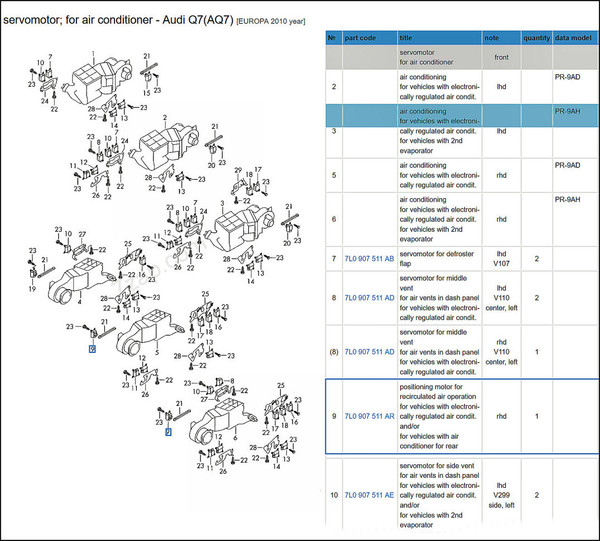 for RHD vehicles with option codes PR-9AD or PR-9AH