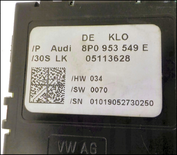 STEERING WHEEL COLUMN ELECTRONICS SENSOR & SWITCH CONTROL CONTROLLER MODULE AUDI A3 2004 - 2007 8P0953549E OE GENUINE USED