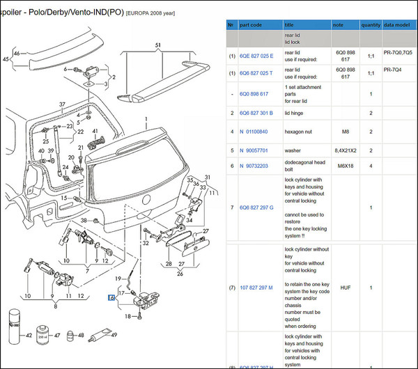 ( lock trunk lid boot-lid rear golf bora sedan hatch hatchback tiguan tailgate )