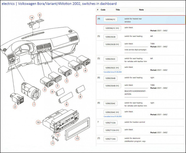 VOLKSWAGEN GOLF BORA MK4 DASHBOARD REAR SCREEN HEATER SWITCH 1J095621C C E F G GENUINE OEM USED