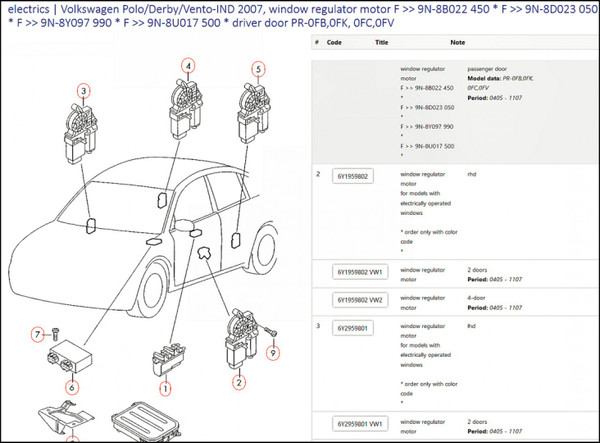 Genuine VW part numbers: