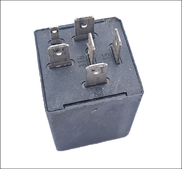 This non-programmable 6-pin relay has 5 large connectors and 1 small