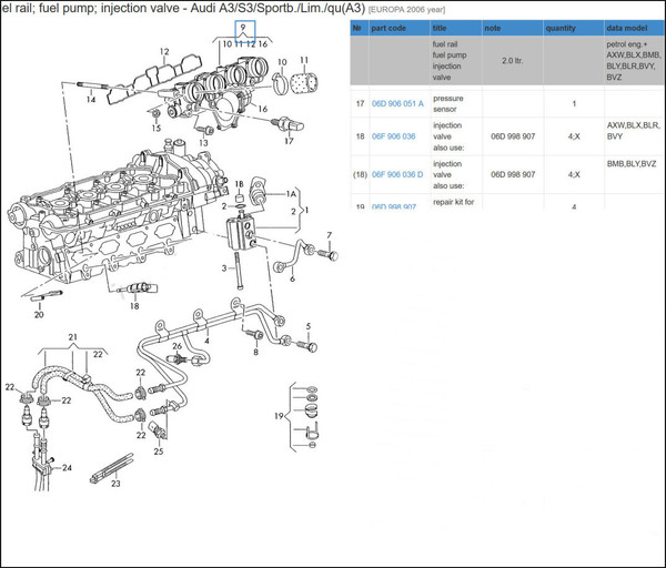( Keywords: fuel fsi 2.0l pressure sensor low AXW BLX BMB BLY BLR BVY BVZ )