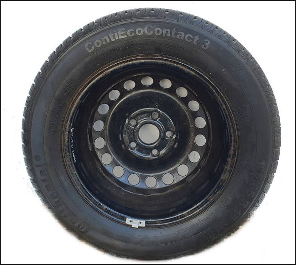 Wheel in average used condition. Tyre 40-50% tread. Perfectly adequate as an emergency spare