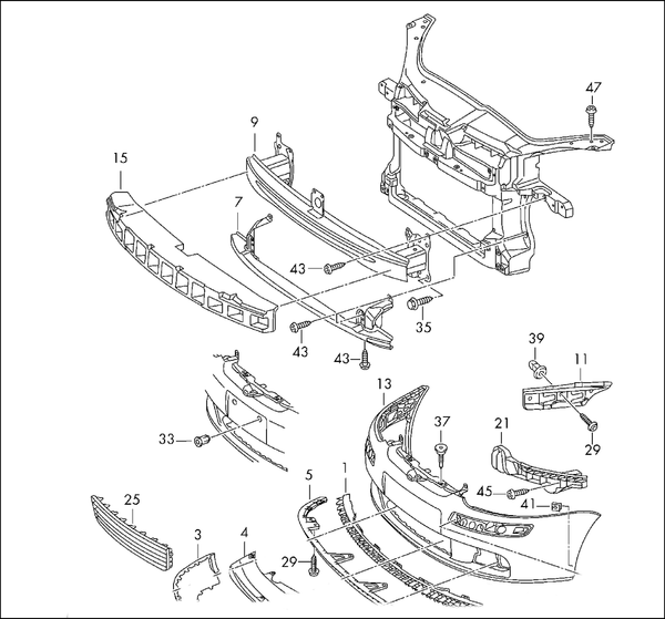 Note: This is the correct version for GTI GT Jetta and R32 with the later full-height one-piece radiator grille. The centre upright support bracket is different to older cars with earlier style grille. You can find the other version on the store under part # 1K5807109C