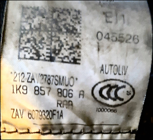 VW VOLKSWAGEN GOLF JETTA MK5 VARIANT WAGON REAR SEATBELT SAFETY BELT INERTIA PRE-TENSIONER 1K9857806A RH RHS RIGHT GENUINE USED