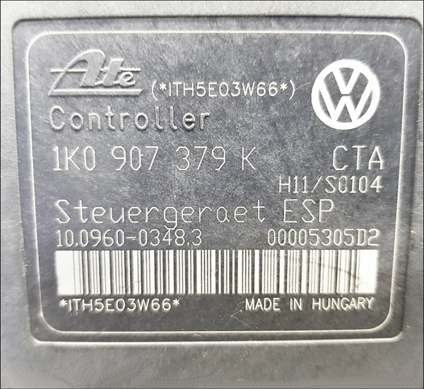 VW VOLKSWAGEN GOLF MK5 1K AUDI A3 8P ABS ESP BRAKE MODULE COMPLETE MK60 ATE 1K0614517J 1K0907379K 2004 - 2007 OE GENUINE USED TESTED