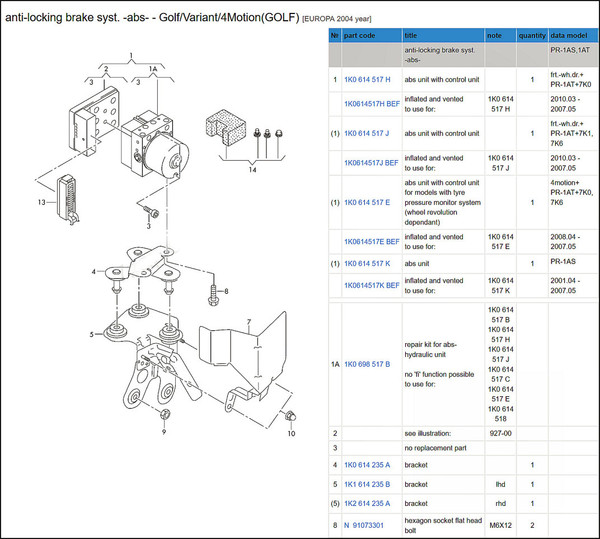 Hydraulic block: 1K0614517J or 1K0 614 517 J replaces 1K0614517H