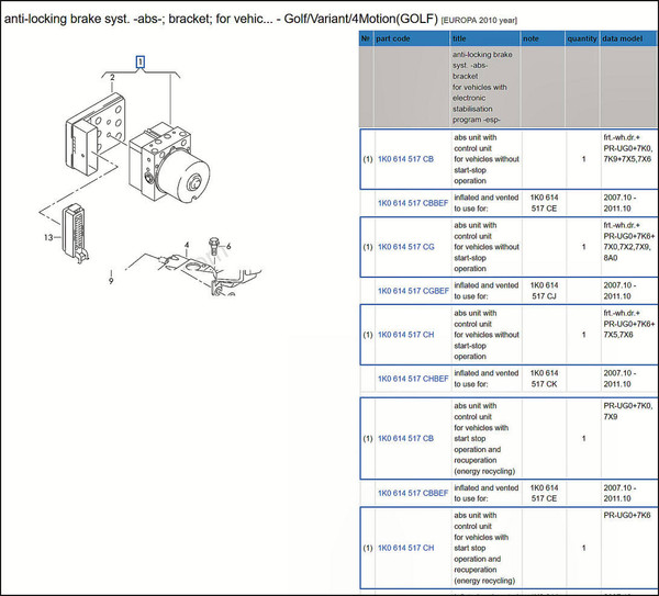 Hydraulic block: 1K0614517BB or 1K0 614 517 BB