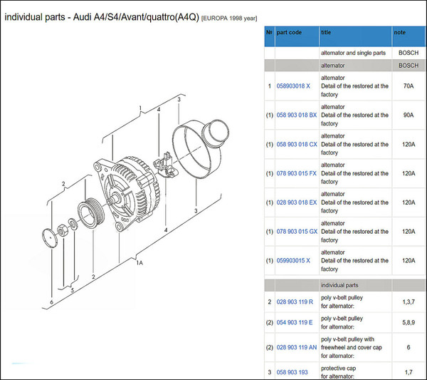 VOLKSWAGEN PASSAT AUDI A4 A6 ALTERNATOR 150AMP 078903015F 0124615007 BOSCH 1991 - 2001 USED GENUINE OE