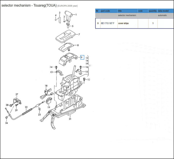 Suits the following models: VW Touareg automatic 7L including facelift 2003 - 2010 right-hand-drive