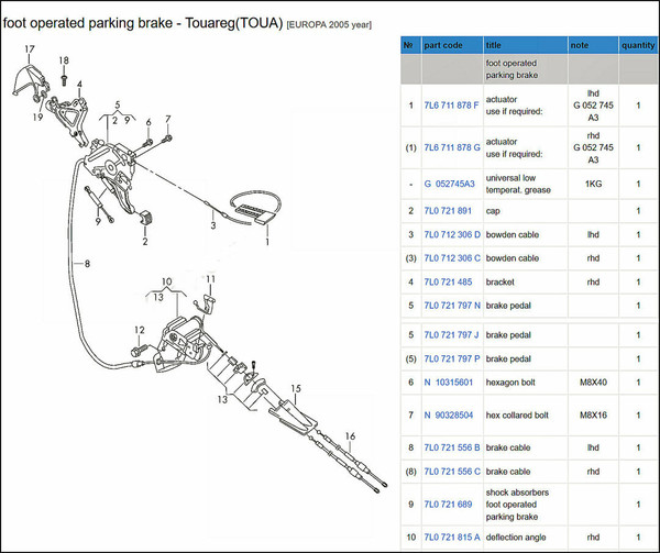VW VOLKSWAGEN TOUAREG AUDI Q7 PORSCHE CAYENNE 2002 - 2010 FOOT EMERGENCY PARKING BRAKE GAS HYDRAULIC DAMPER SPRING NEW AFTERMARKET