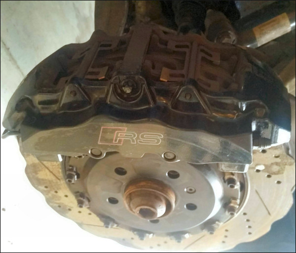Front Brakes: PR-1LM Brembo steel 19" 365mm painted Black fitted with ECS Tuning 2-Piece Wave Rotors almost new